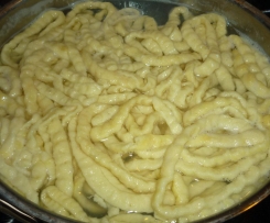 Habe heute die Spätzle von den übrig gebliebenen gekochten Salzkartoffeln von gestern gemacht . Total lecker .Hammer