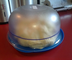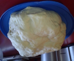 " Modus „Teig kneten“" kneten. dann 20 min gehen lassen.Ich habe einfach eine feste Unterlage, auf der ich den Teig gebe und stülpe einfach eine durchsichtige Tu****schüssel drüber.