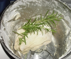 Das zweite Stück Teig und den Rosmarin in den Mixtopf geben (falls Teig klebrig noch 1 EL Mehl zugeben) und 3 Sek. / Stufe 5 mixen. Teig rausnehmen!