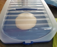 - Teig auf eine eingeölte Arbeitspatte kippen und rund wirken. In einem Tortenbutler 1 Std. bei Raumtemperatur gehen lassen.