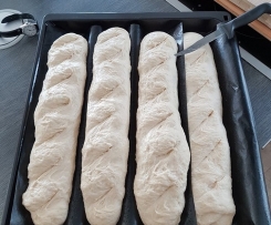 Baguette bis der Ofen heiß ist nochmal gehen lassen... - Ofen gleich nach dem Einschieben auf 220° zurückstellen!