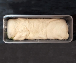 Den Teig rechteckig ausrollen, dabei darauf achten, dass die lange Seite die Länge der Kastenform hat, in der nachher das Brot gebacken wird.