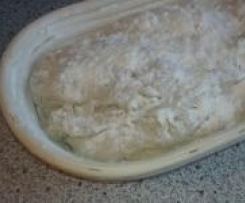 Den Teig in eine bemehlte Schüssel oder Garkörbchen geben und im Kühlschrank über Nacht gehen lassen.