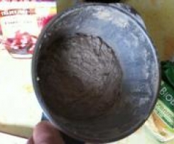 In eine gefettete und gemehlte Form geben und 30 Minuten abgedeckt gehen lassen