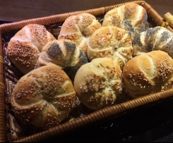 Diese Brötchen schmecken auch noch am nächsten Tag, einfach mit wasserfeuchten Händen einreiben und für 5 Minuten in den Backofen, schmecken dann noch immer wie frisch gebacken. Auch eine Idee für den Sonntag, wenn niemand zum Bäcker fahren möchte.