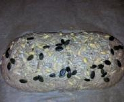 Dieses Brot ist unser absolutes Lieblingsbrot. Mittlerweile Backe ich kein anderes mehr, sondern ändere bei diesem einfach nur die Getreidesorten und Körner/Nüsse. Die angegebenen 600gr.Mehl schrote ich komplett selbst. Haben bereits Roggen, Dinkel, Weizen, Buchweizen, Hafer, Walnüsse, Cashews -blablabla- in verschiedensten Varianten kombiniert -> dieses Brot gelingt einfach immer und schmeckt unerreicht. Die angegebenen Mengen verändere ich nicht. Ich gebe den Teig in eine kleine runde Springform, ergibt fertig einen schönen gut 1kg Laib Brot...