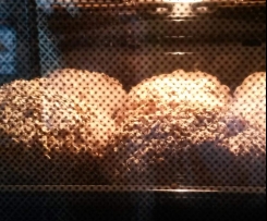 Brötchen auf ein Rost in den kalten Ofen legen, Umluft 180°C für 15 Min. einstellen und noch 5 Min. auskühlen lassen.