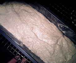 Alle Zutaten in den Mixtopf geben und 3 Min. auf der Teigstufe zu einem Teig verarbeiten! In der Zwischenzeit Brotform fetten, feuerfeste Form mit Wasser in den Ofen stellen. Teig (sehr weich und klebrig) mit Hilfe des Spartel umfüllen und in den kalten Ofen stellen. 1/2 Std. bei 200 ` Grad und eine 1/2 Std. bei 175 `Grad backen. Aus der Form lösen und auf einem Gitter auskühlen lassen. Fertig!!