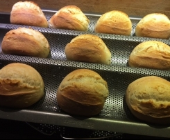 Ich empfehle zum backen eine gelochte Baguette-Form oder ein gelochtes Blech... auf dem Stein werden Euch die Brtöchen von unten nicht knusprig genug und könnten auch seitlich aufreißen.