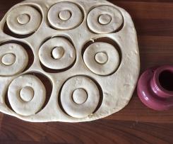 - Ich habe einen Donut-Austecher. Man kann es aber auch mit einem Glas ausstechen und die Mitte mit einem Flaschendeckel o.ä. ausstechen.