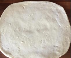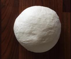 " Modus „Teig kneten“" kneten. Bei Bedarf noch Mehl hinzufügen. Der Teig sollte nicht an den Händen kleben bleiben. - Die Arbeitsfläche mit etwas Mehl bestäuben und den Teig zu einem Rechteck rollen.