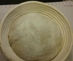 - In einem bemehlten Gärkörbchen mit dem Schluss nach unten geben und mit einem Leintuch zugedeckt nochmals je nach Zimmertemperatur 75-90 min. gehen lassen.