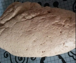 - Stürzen Sie den Teig ---das geht super gut, nachdem die Schüssel vorher mit dem gf BTM ausgepinselt wurde ----- auf die Backunterlage und kneten ihn Mithilfe derselben.