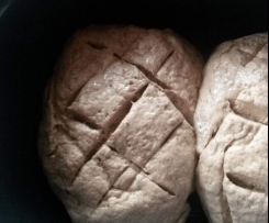 " Modus „Teig kneten“" verarbeiten,jedoch nach 30 sec. stoppen, erst einmal Apfelessig zuwiegen und wieder einschalten, dann nach weiteren 30 sec. noch das Distelöl zuwiegen! - Ofen auf 50° C vorheizen.