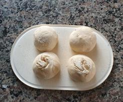 Foto 1: 2 obere Teiglinge, Schluss nach unten, 2 untere Teiglinge, Schluss nach oben, da sieht man wie das Mehl eingearbeitet wurde