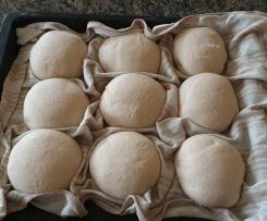 Die Tüte mit den eingepackten Teiglingen über Nacht in den Kühlschrank geben, am nächsten Tag, die Teiglinge mit dem Schluss nach oben auf ein mit Backpapier ausgelegtes Backblech geben, abgedeckt mit ein Geschirrtuch bei 30°C für ca. 20-30 Min. in den Backofen schieben.