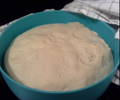 In eine Schüssel umfüllen und 30 min gehen lassen. Dann sieht der Teig so aus.