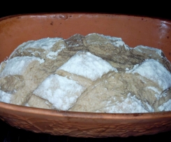 Römertopf einfetten und bemehlen. (nicht wässern!!!)