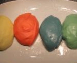 " Modus „Teig kneten“" .Dann Teig vierteln und jedes Viertel mit ca. 1 TL Speisefarbe auf