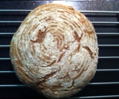 Ist das Brot fertig, aus der Kastenform nehmen und noch kurz im ausgeschalteten Ofen nachbräunen. Rundes Brot ohne Kastenform nach Klopfprobe entnehmen. Auf einem Gitter auskühlen lassen.