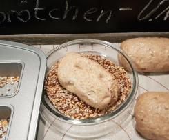 Falls Ihr keinen Deckel für die Form habt stellt nur den Teig abgedeckt in den Kühlschrank und dann am nächsten Morgen die Brötchen formen.
