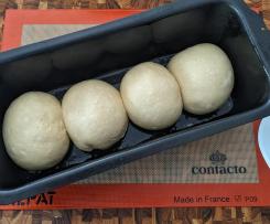 - Die Teigstücke zu Kugeln formen, in eine große gefettete Kastenform legen, zudecken und 90 Min. gehen lassen.