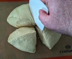 - Den Teig mit einem scharfen Messer oder Skalpell ca. 1–2 cm tief einschneiden.