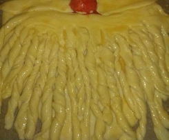 Ganz einfach herzustellen. Mein Teig bestand jedoch aus 600 g Mehl, 1 Hefewürfel, 250 ml Milch, 150 g Butter, 100g Zucker und Salz.