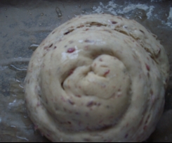 Den Teig zu einer langen Schlange formen , aufrollen und mind. 30 Min. gehen lassen.