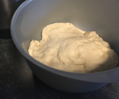 "Mixtopf geschlossen" in eine Schüssel geben, mit einem feuchtemKüchentuch abdecken und 1 Stunde lang bei Zimmertemperatur gehen lassen.
