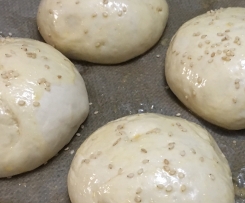 Hier dürfen es sich die Buns noch einmal 1 Stunde bei Zimmertemperatur gut gehen lassen. - Für eine schöne Farbe und Optik kann man nun ein Ei verquirlen und die Buns bestreichen. Danach mit geschältem Sesam dekorieren.