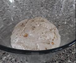 " Modus „Teig kneten“" . Dabei werden die Walnüsse grob zerkleinert. - Den Teig mindestens eine Stunde gehen lassen