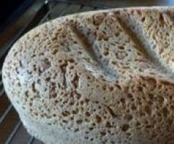 Ich habe das Originalrezept TM-tauglich und etwas gesünder gemacht und dabei die Flüssigkeitsmengen verändert. Das Original sieht Weizenmehl Typ 550  an Stelle meiner Dinkel und Weizenmehlangaben vor und treibt den TM zum Wahnsinn. Es ist eigentlich ein freigeschobenes Brot und von Hand knetbar. Meine Variation ist breiig und nicht von Hand knetbar.