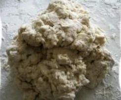 Teig noch einmal ganz kurz durchkneten. Dann Teig zu einem Recheck ausrollen. Wie man auf meinem Foto sieht muß das Rechteck nicht perfekt sein!