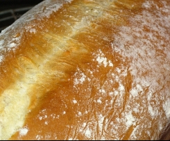 Weitere 1/2 Std. im Mixi gehen lassenDann den Teig kurz mit den Händen (Vorsicht!!! sehr weich) durchkneten und in eine gefettete une mit Mehl bestäubte 25er Kastenform geben.15 Min. abgedeckt gehen lassen, dann mit einem scharfen Messer einritzen und weitere 30 Min. gehen lassen.In dieser Zeit den Backofen auf 250°C Ober-/Unterhitze vorheizen. Ein tiefes Backblech mit aufheizen. In dieses eine Tasse Wasser gießen und schnell den Ofen schließen (feuchtes Klima ist sehr gut beim Brotbacken)Wenn der Ofen die Temperatue erreicht hat, Das Blech mit dem restlichen Wasser aus dem Ofen nehmen und die Backform reinstellen.15 Min. bei 250°C backen, dann auf 210°C runterschalten und weitere 30 Min. backen.