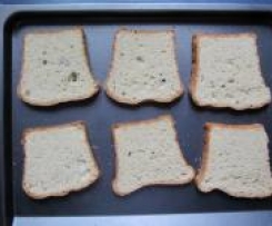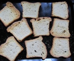 Danke für das tolle Rezept. Gebe etwas wenige Zucker hinzu. Ich backe es in 4 kleine 15 cm Kastenform. Schneide es ganz dünn, Brotschneidemaschine Einstellung 5,5. Lege es auf das Backblech. Decke es mit Backpapier ab und gebe ein Gitter zum beschweren darauf, damit die Scheiben flach bleiben. So ca. 6 bis 7 Minuten von jeder Seite. Ist ähnlich dem in Holland der bekannten Melba Toast.