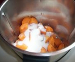 "Mixtopf geschlossen" geben und dann aufkochen bei 100 Grad./ 14 Min./ Stufe 1 ./ und dann durch ein Siben ----Vanillestängel entfernen ,3--Der Aprikosenpüree ,und die ausgepresste Gelatine und die Sahne ,Milch in den Mixtopf