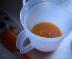 "Sanftrührstufe" ./ Und dann pürieren bei 15 Sek ./ Stufe 10 ./ . und umfüllen .und
