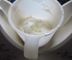 3. Die Sahne mit dem Handmixer steif schlagen. Das geht auch im Mixtopf geschlossen"Mixtopf geschlossen" , aber ich muss sie sowieso umfüllen.