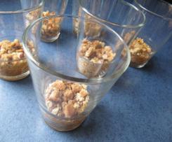 10. 6 TL der zerkleinerten Cantuccini-Kekse beiseite stellen und mit den Schokoladenraspeln vermischen. Den Rest in 6 Gläser verteilen (meine haben ein Fassungsvermögen von 220 ml). Die Keksbrösel mit dem kalten Espresso beträufeln.