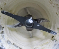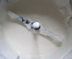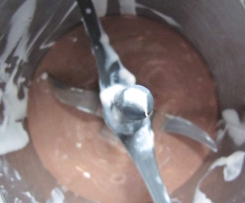 Den Schmetterling wieder einsetzen und die kalte Nougatsahne einfüllen. Das Ganze 2,5 - 3 Min. / St. 3 cremig aufschlagen. Bitte aufpassen, dass es nicht zu Butter wird! Die Sahne bleibt auch nach dem Schlagen noch recht flüssig.