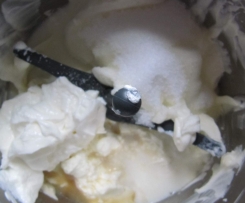 Den Schmetterling einsetzen, die Sahne einfüllen und 2,5 Min. / St. 3 steif schlagen. Zwischendurch mit dem Spatel nach unten schieben.