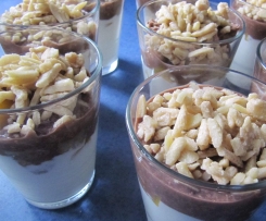 Die Nougatsahne über das Obst geben und mit den Mandeln bestreuen. Bis zum Verzehr kühl stellen.