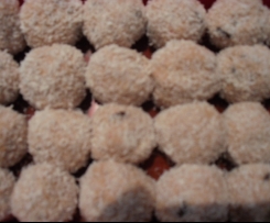 Aus der Masse kleine Kugeln formen und in Kokosraspel wälzen. Im Kühlschrank aufbewahren und gekühlt servieren.