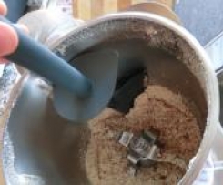 "Mixtopf geschlossen" 4 Sek. / Stufe 6 zermahlen. Anschließend mit Spatel Nussmehl von Mixtopfwand kratzen. Im
