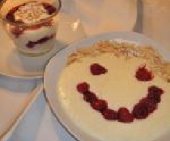 "Linkslauf" oder Spatel) vorsichtig unterheben. Zuletzt noch die Himbeeren unterheben bzw. abwechselnd Sahne-Milchreis und Himbeeren in eine Form schichten und mit den gerösteten Mandelstiften dekorieren.Wünsche gutes Gelingen!