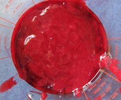 Die 1,5 Blatt Gelatine tropfnass ausdrücken und auf dem Herd auflösen. Das Himbeerpüree unterrühren.