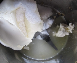 Mascarpone, Zucker, Vanillezucker und Zitronensaft in den