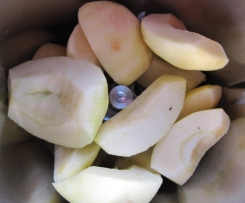 Die Äpfel schälen, entkernen und vierteln (es waren bei mir dann noch 420 Gramm). Die Äpfel in den