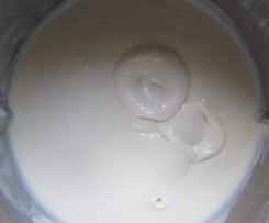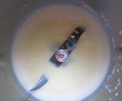 Alles 10 Sek. / St. 4 verrühren und kalt stellen. Je nach Geschmack noch etwas Zucker unterrühren. Ich habe die Creme zum Abkühlen umgefüllt.